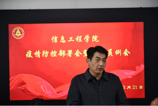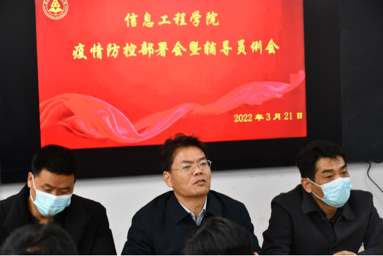 随后,院长黄宇达讲话,黄院长要求辅导员及学生干部一定要在思想上重视疫情防控工作,思想指导行动,辅导员及学生干部要带头遵守校园疫情防控各项规定,他讲到,在学校党委的正确领导下,在在座各位的努力下,一定能取得抗击疫情的最终胜利。