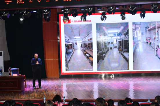 随后,王文立主任以“一抓、二建、三评”为题详细解读了学院的学生管理工作,即以日常检查、比赛和活动为抓手,促进学生成长成才;完善学生和班级量化测评建设,夯实学生管理基础;发挥评奖评优评先机制,营造争先创优氛围。报告图片内容丰富,讲解细致,赢得了同学们的共鸣。