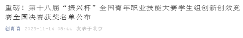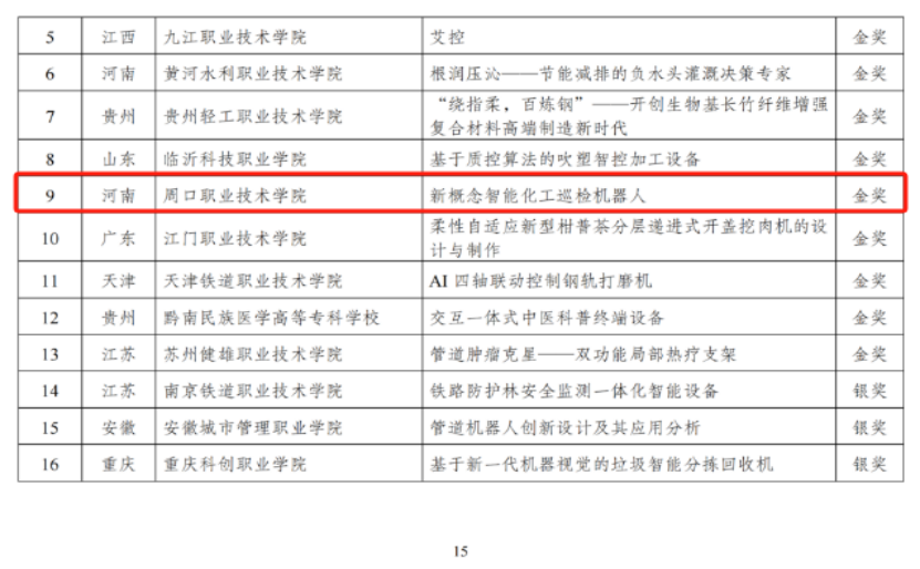 第十八届“振兴杯”全国青年职业技能大赛学生组创新创效竞赛全国决赛于11月9日至11日在河南郑州举行。经过省赛、全国预选赛多轮角逐,共有来自全国26个省份的241件作品入围全国总决赛,其中中职组作品88件,高职组作品153件,涵盖技术革新、创意设计和管理创新3个竞赛方向。经过激烈竞争比拼及专家层层评审,Beat365中文官方网站由张矿伟、轩立两位老师指导,任俊臣、卜焱等同学设计的《新概念智能化工巡检机器人》项目在高职组创意设计类赛项中以全国第九名的优异成绩荣获金奖。