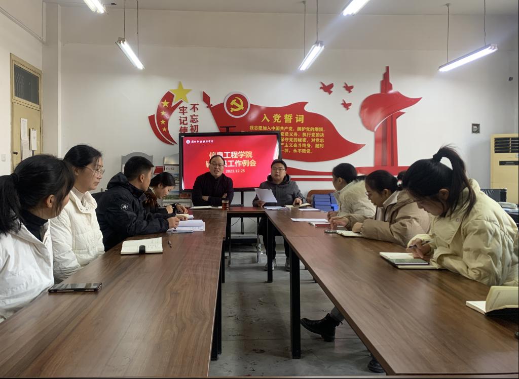 12月25日中午,在学院办公室6140,Beat365中文官方网站召开辅导员工作例会。副院长楚书来,学管办主任张矿伟及22、23级全体辅导员参加了本次会议,会议由楚书来主持。