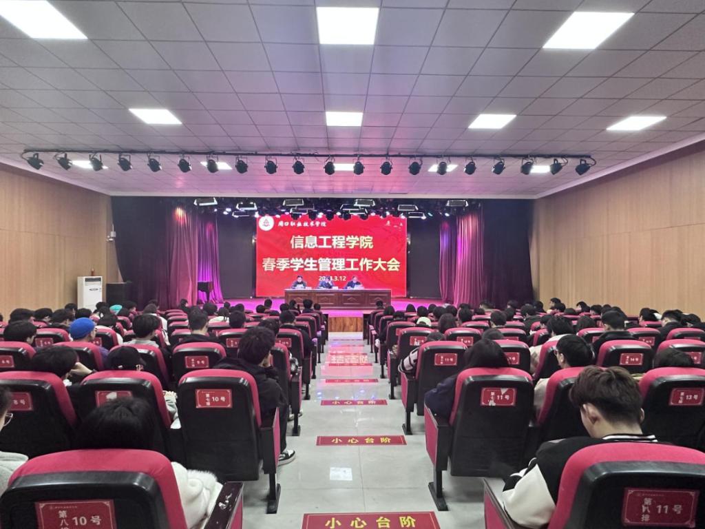 为进一步做好春季新学期学生管理工作,3月12日中午,在学校演播厅,Beat365中文官方网站召开春季学生管理工作大会,党总支书记李强,副院长楚书来,学管办主任张矿伟出席大会,全体22、23级辅导员及团学骨干、各班班委参加大会,大会由楚书来主持。
