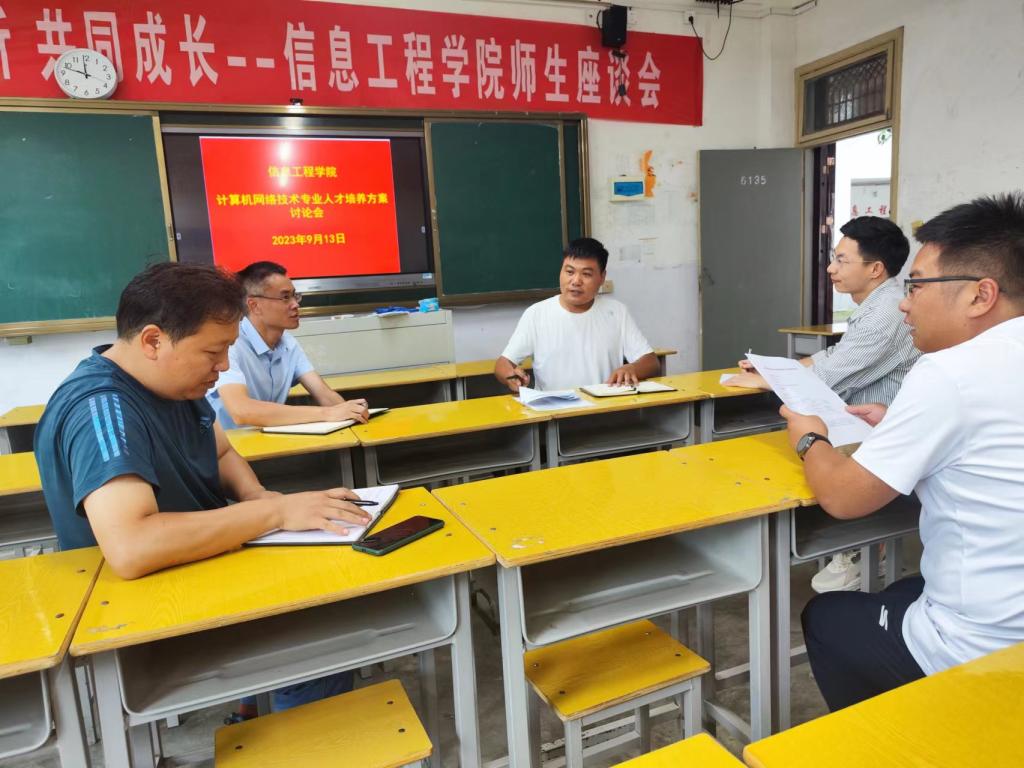 为进一步推进2024级Beat365中文官方网站计算机网络技术专业人才培养方案修订工作,9月13日上午,计算机网络技术专业开展了人才培养方案讨论会。会议由计算机网络技术教研室主人李华中主持,教学办主任周耀华、实验室主任张鹏伟,专任老师张矿伟、史强参加。会议旨在论证2023版人才培养方案可行性,探讨如何优化计算机网络技术专业人才培养方案,从而进一步提升高素质技能人才培养质量。