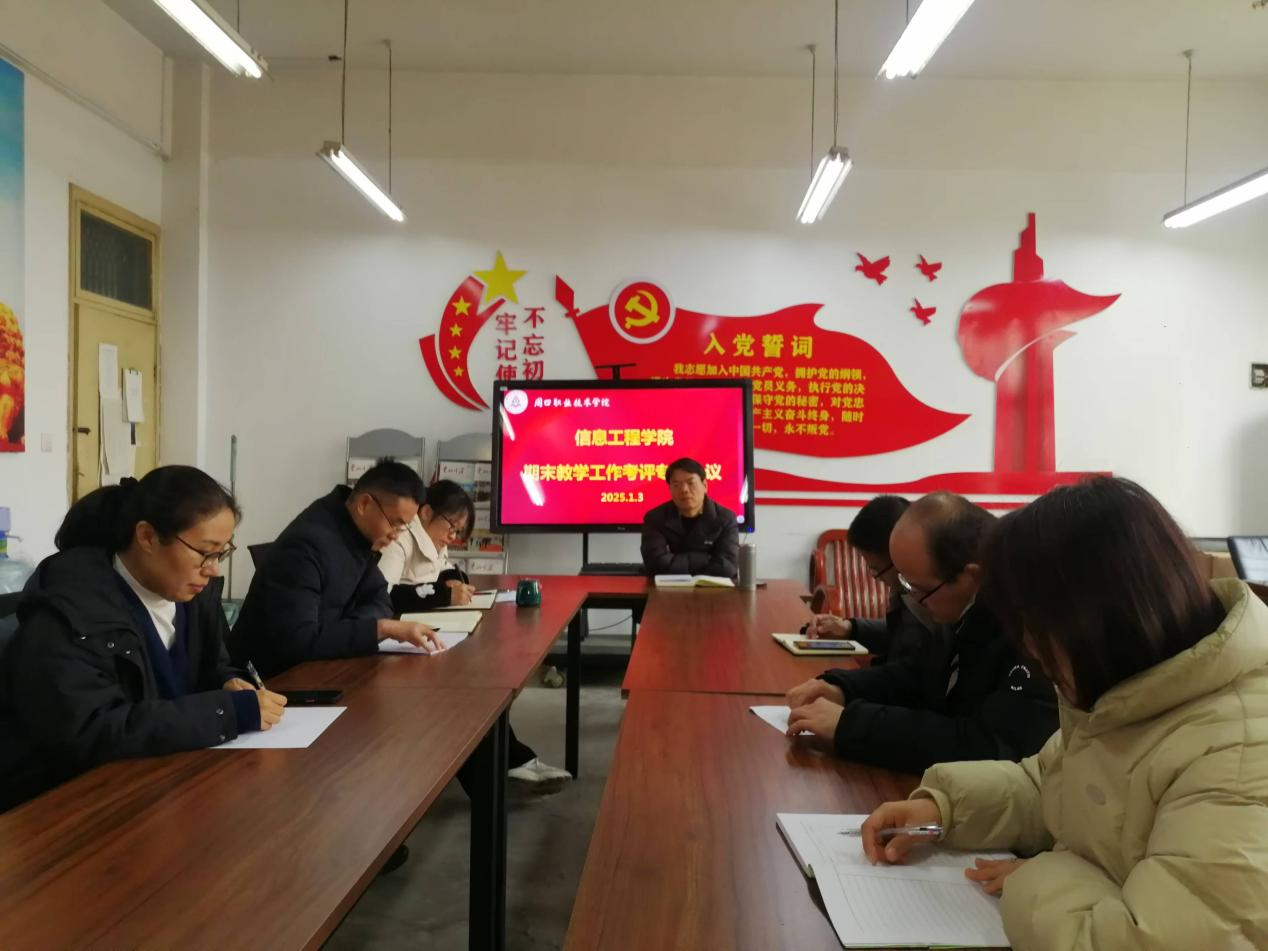 为进一步做好期末教学考评工作,2025年1月3日上午,在学院6140办公室,Beat365中文官方网站召开期末教学工作考评专题会议,院长黄宇达,副院长侯艳芳,教管办主任周耀华及各教研室主任参加会议,会议由黄宇达主持。