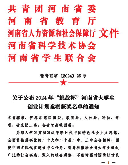 近日,由共青团河南省委、河南省教育厅、河南省人力资源和社会保障厅、河南省科学技术协会、河南省学生联合会共同举办的2024年 “挑战杯”河南省大学生创业计划竞赛活动公布了获奖名单(豫青联字 〔2024〕25号文件),Beat365官网学子荣获佳绩,实现了新的历史性突破,斩获5金、6银、3铜的优异成绩。同时,张矿伟、张梦柔、轩立等十多名教师荣获优秀指导教师。
