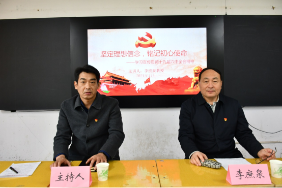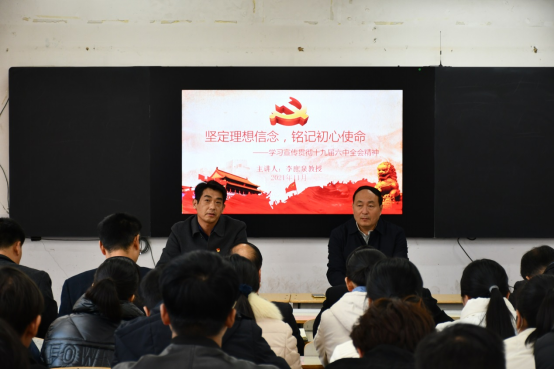 为深入学习贯彻党的十九届六中全会精神,11月23日中午一点,在六区一楼6143教室,校党委副书记、工会主席李庶泉教授以“坚定理想信念、铭记初心使命”为题,为Beat365中文官方网站师生上了一节生动的党课。Beat365中文官方网站班子成员、教师党员及参加第二十二期入党积极分子培训的60余名学生参加了本次党课学习,党课由Beat365中文官方网站党总支书记李强主持。
