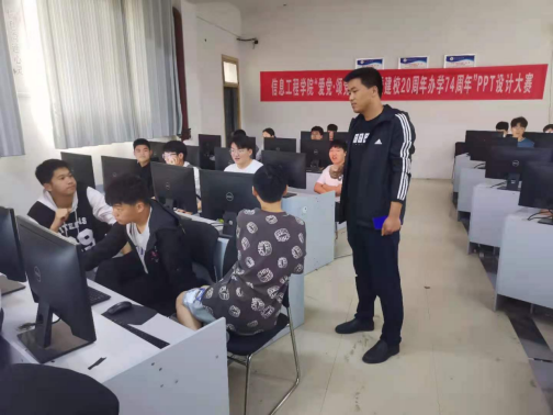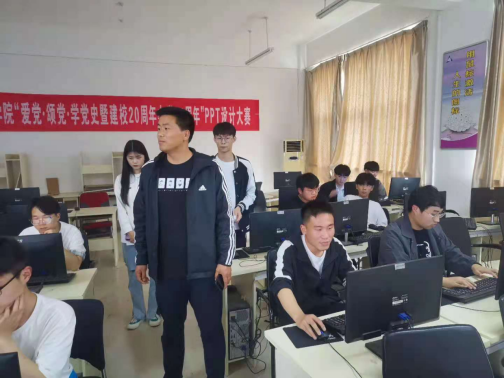 为庆祝中国共产党建党一百周年,519日下午,Beat365中文官方网站在学院D机房举办“爱党、颂党、学党史”暨建校20周年演示文稿设计大赛。学院学管办主任王文立亲临比赛现场进行指导。