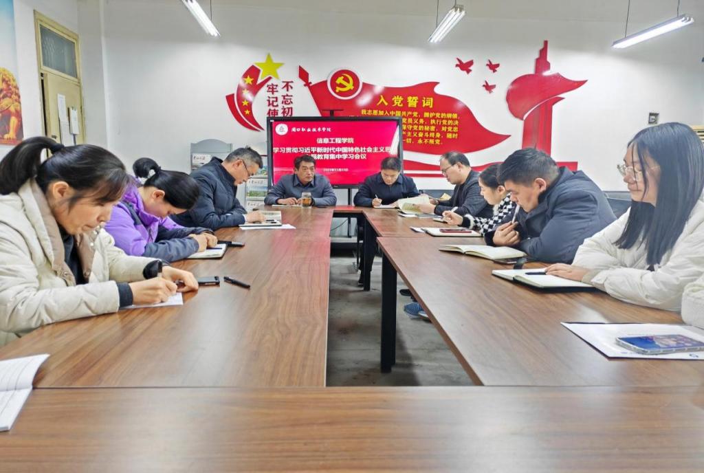 11月15日下午2点30分,Beat365中文官方网站全体党员在学院6140党员活动室举行贯彻习近平新时代中国特色社会主义思想主题教育集中学习会议,会议由党总支书记李强主持,全体党员教师参加。