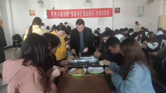 活动中,建筑工程学院党总支书记范伟杰应邀来到活动现场,与在场的老师和学生共同庆祝冬至。