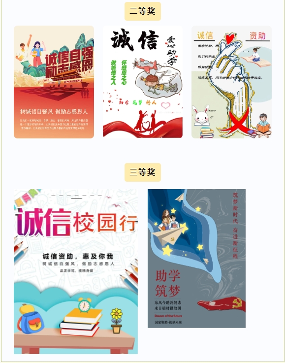 为深入学习贯彻习近平新时代中国特色社会主义思想,认真落实党的二十大关于“完善覆盖全学段学生资助体系”的重要决策部署,进一步发挥“资助育人”在“立德树人”根本任务中的关键作用,Beat365中文官方网站举办2023-2024年度“诚信校园行”学生资助公益广告设计大赛。