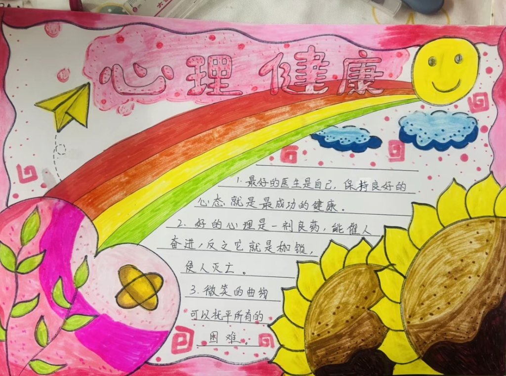 通过一幅幅充满温度与思考的作品,同学们展现了内心的丰富世界,传递出积极向上的生活态度。此次活动不仅是一次心灵的自我探索之旅,更是一场温暖而深刻的教育实践,助力同学们在阳光下健康成长,向着心中的光,勇敢前行。