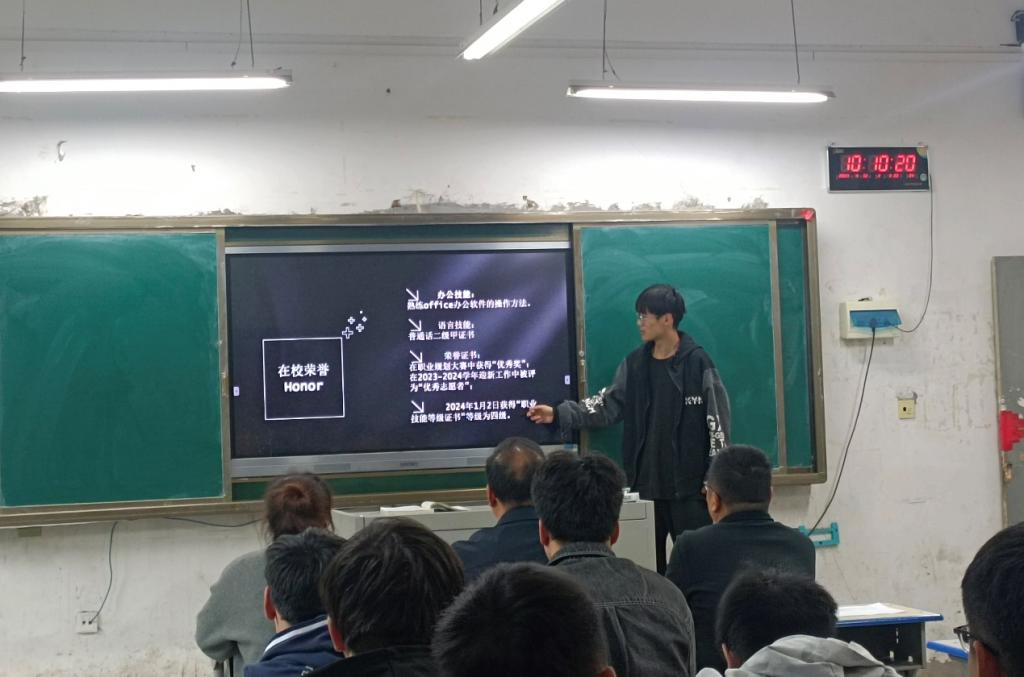 此次比赛以PPT演示和求职演讲的方式进行,赛事伊始,各位参赛选手按照事先抽好的顺序依次上台对自己的简历进行简要的介绍,在选手介绍期间,评委根据简历内容、排版等对选手进行打分。比赛的精彩,不仅是在于选手们面对评委时的沉着冷静、自信从容,更在于他们对比赛背后付出的努力。在此次比赛中,选手们认真努力备赛,制作了富有创意的高质量简历。
