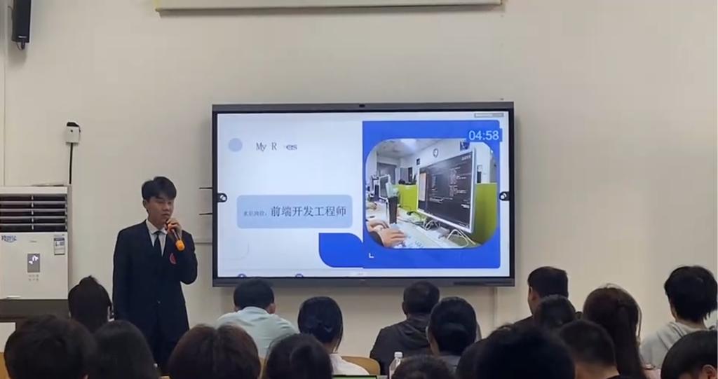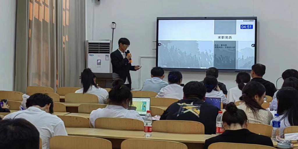 在比赛过程中,选手们通过PPT的形式,向评委和观众详细介绍了自己的目标职业、兴趣爱好、实习经历、特长展示等。选手们用生动的语言和自信的态度,将设计的简历全面详细地诠释给评委们,向评委们展示自己的简历风采,简历制作彰显的不仅仅是精简美,更是彰显图文间的精彩经历。