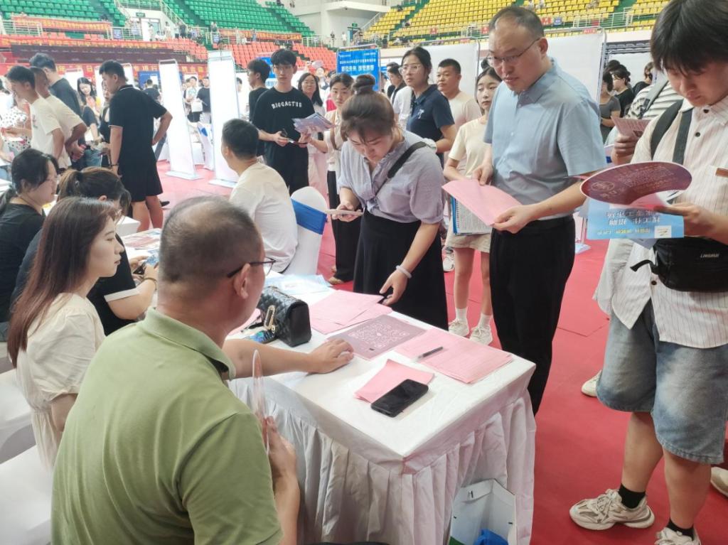 为深入贯彻党中央、国务院关于高校毕业生就业工作的决策部署,落实教育部“访企拓岗”工作要求,进一步深化校企合作,汇聚各方资源,拓宽毕业生就业渠道,Beat365中文官方网站于2024年8月24日在周口市体育中心广场参加“百日千万招聘专项行动”活动,积极开展访企拓岗。Beat365中文官方网站副院长楚书来、就业创业指导员王瑞雅带领学生来到现场,与企业代表亲切交流,深入了解他们的岗位待遇和招聘情况。