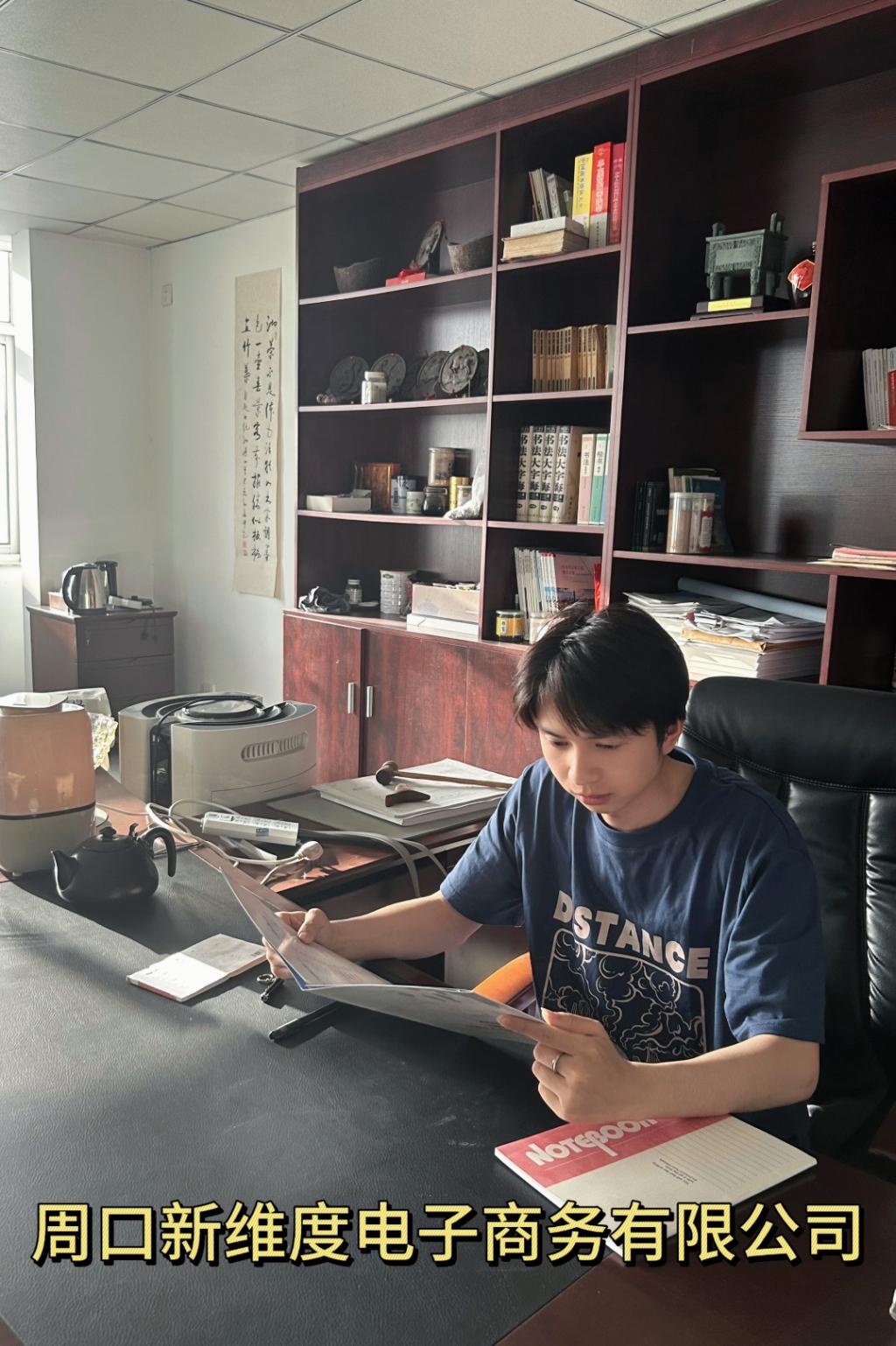 周红鑫第一次接触电商大概是在2013年,他姐姐用手机网络购物给其父买了一双皮鞋,当时感觉既便利又神奇,因此,时常关注电商相关资讯,见证了拼多多等电商平台的的快速发展和崛起。毕业时因为疫情原因,线下找工作受限,他考虑再三,决定与朋友开始做电商。一间简陋的出租屋,三个刚毕业的大学生,周红鑫注册成立了周口新维度电子商务有限公司,从此,他的创业就拉开了序幕。公司从选品开始,经历了试穿、直播、总结、失望、迷茫到互相鼓励、继续奋斗,从一个新手慢慢的总结经验到单子越来越多,公司才慢慢有了起色。