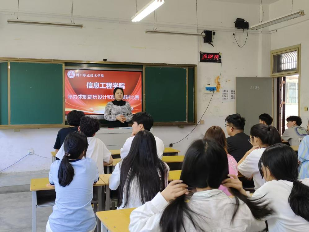 比赛现场,参赛学子精神饱满、自信昂扬,围绕“简历展示+竞聘演讲”两大核心环节展开角逐。在简历设计上,同学们充分结合专业特色与目标岗位需求,以清晰的结构、精炼的内容、新颖的版式展现个人学业成果、实践经历与职业潜力,部分作品巧妙运用专业软件进行视觉设计,凸显了信息工程类学子的技术优势与创新思维。演讲环节中,选手们从基本信息介绍、目标岗位认知、核心竞争力分析、未来工作规划四个维度娓娓道来,既有对专业知识的熟练运用,也有对职场素养的深刻理解,流畅的表达、真挚的态度与精准的岗位适配分析,赢得了评委与观众的阵阵掌声。