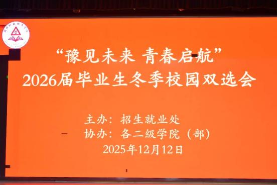 为搭建毕业生与用人单位的精准对接平台,助力2026届毕业生高质量就业,学校正式发布2026届毕业生冬季校园双选会参会通知,确定本次双选会以“豫见未来·青春启航”为主题,将于12月12日14:00—17:00在开元校区体育馆举办。