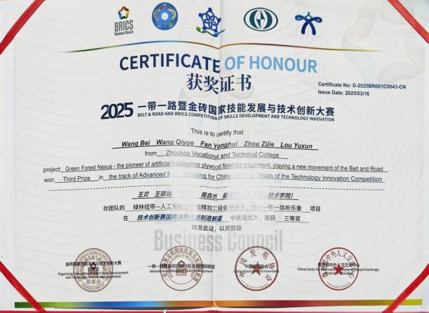 竞赛赛场上,周自杰带领团队啃教材、析案例、勤复盘,从专业“小白”蜕变为科创能手。其团队研发的“智能消防头盔”获5项实用新型专利,还斩获中国国际大学生创新大赛铜奖、一带一路暨金砖国家技能赛事国赛一等奖等荣誉,相关事迹获20余次媒体报道。